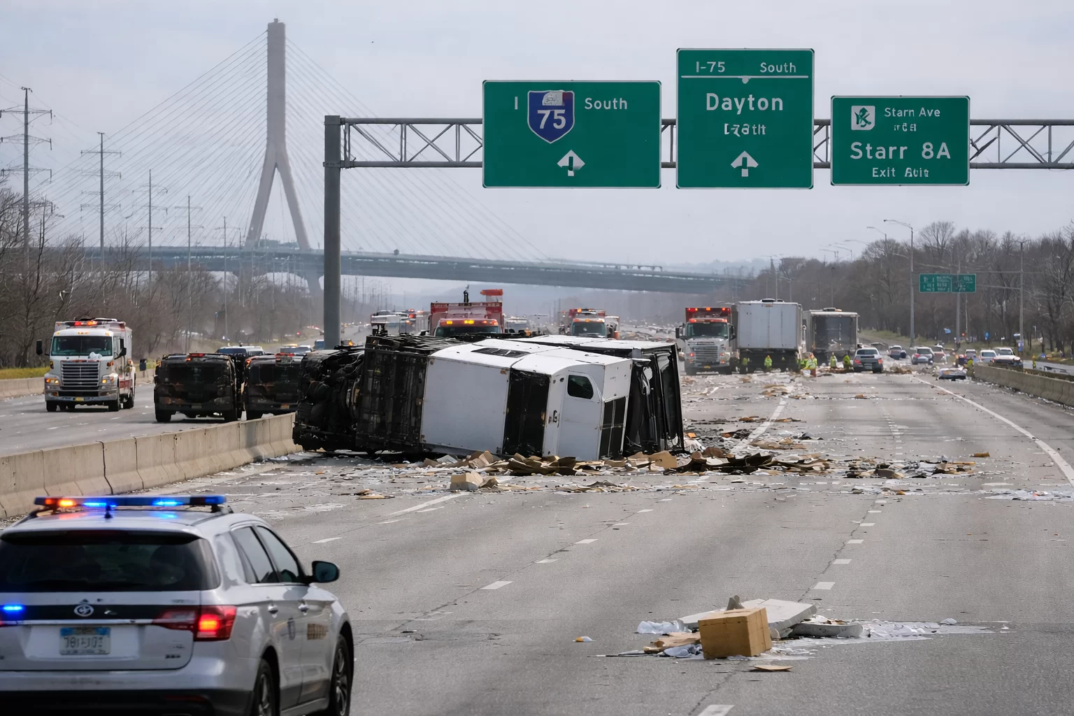 Traffic disruptions extended beyond those highways as well. Officials reported the I-75 northbound ramp connecting to U.S. 23 and Interstate 475 was closed because of a separate crash, and traffic was blocked at the U.S. 6/U.S. 20 westbound and State Route 19 northbound interchange.